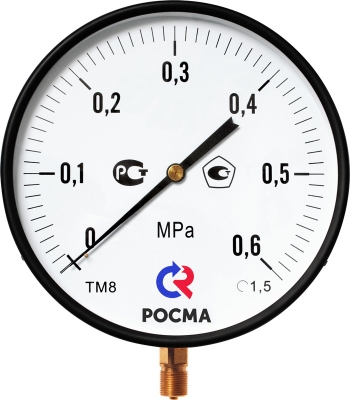 Пример обозначения: ТМ − 8 1 0 Р.00 (0–0,25 МПа) M20×1,5. 1,5