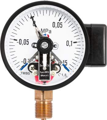 Электроконтактная приставка может быть установлена на ТМ (ТВ, ТМВ)-510 или ТМ (ТВ, ТМВ)-610 с радиальным расположением штуцера и классом точности 1,5. Электроконтактная группа снабжена указателями, с помощью которых осуществляется настройка приставки на пороговое значение (значение уставки).